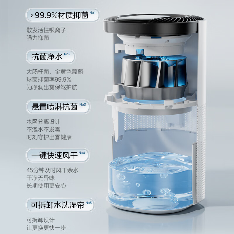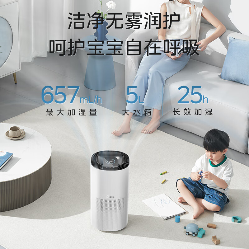 美的(Midea)【空调伴侣】无雾加湿器卧室大容量家用AI智能恒湿除菌办公室桌面婴儿母婴空气加湿净化器低噪快加 【无雾加湿净润】ZS-QQ5价格:699.00元!