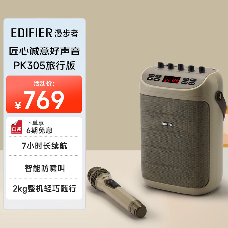 漫步者(EDIFIER) PK305 旅行版便携式户外移动音箱配话筒 K歌专用蓝牙音响 户外露营野营音响价格:769.00元!