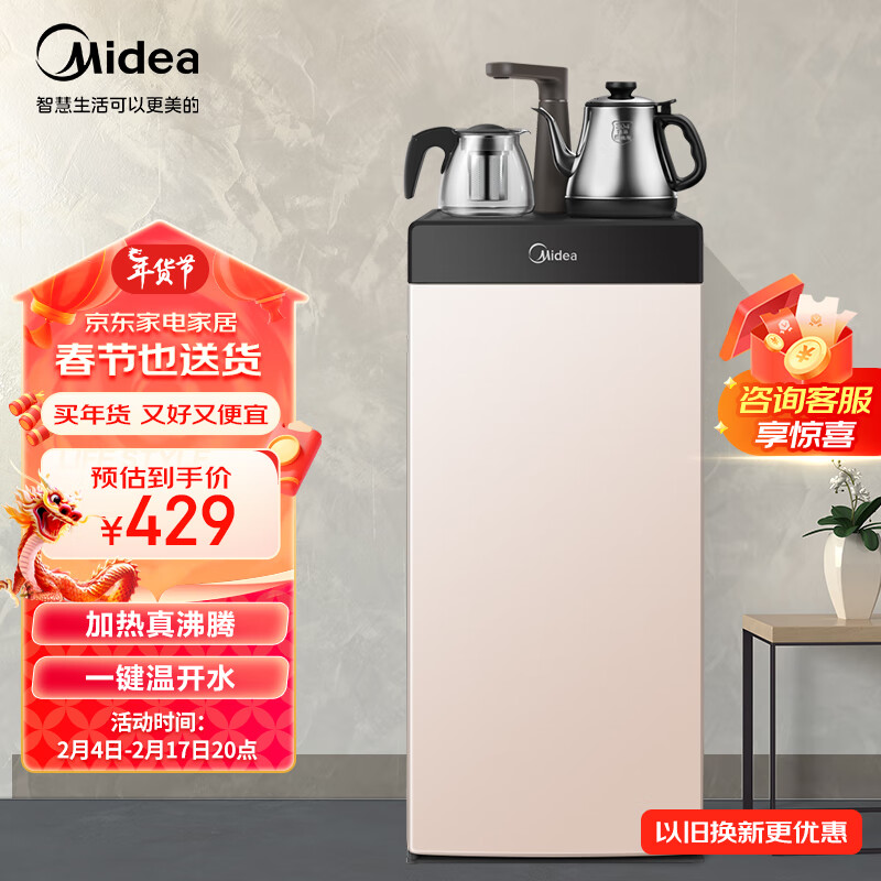 美的(Midea)茶吧机饮水机家用下置式桶装水抽水器上水器可旋转出水饮茶机立式温热型 YR1206S-X价格:429.00元!