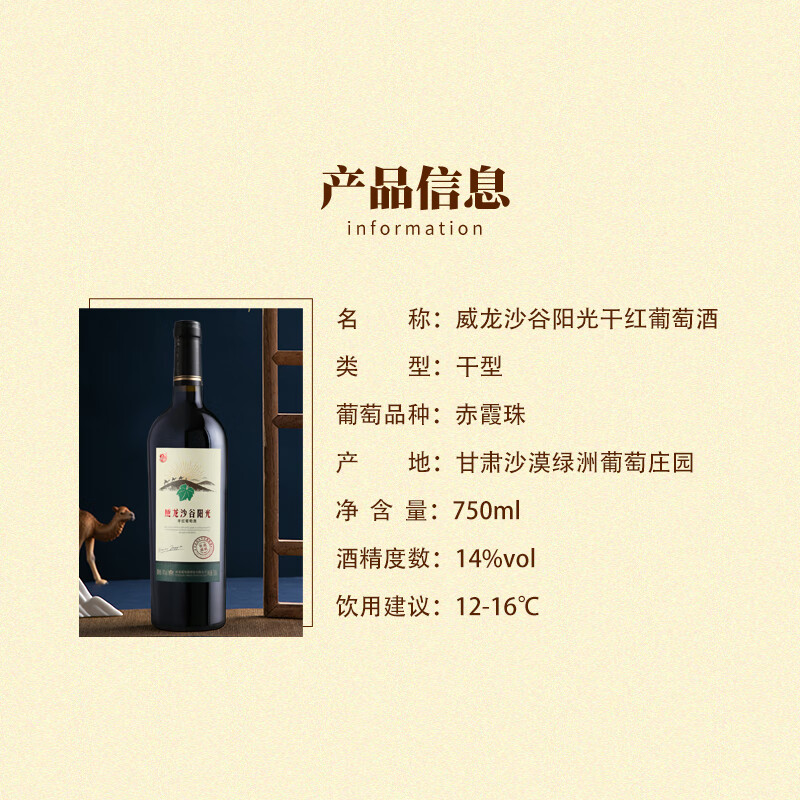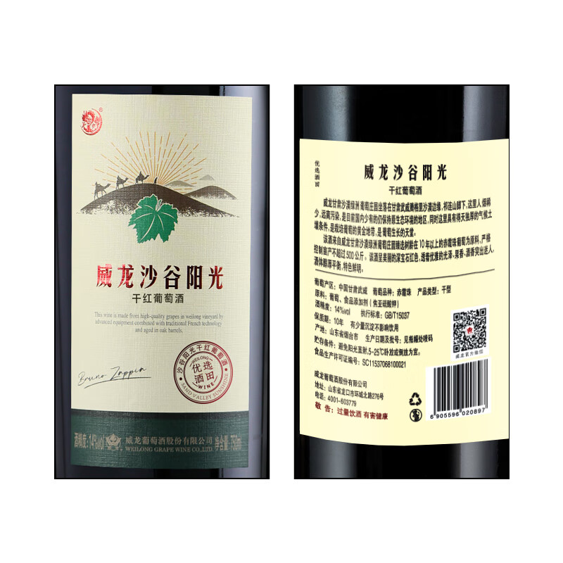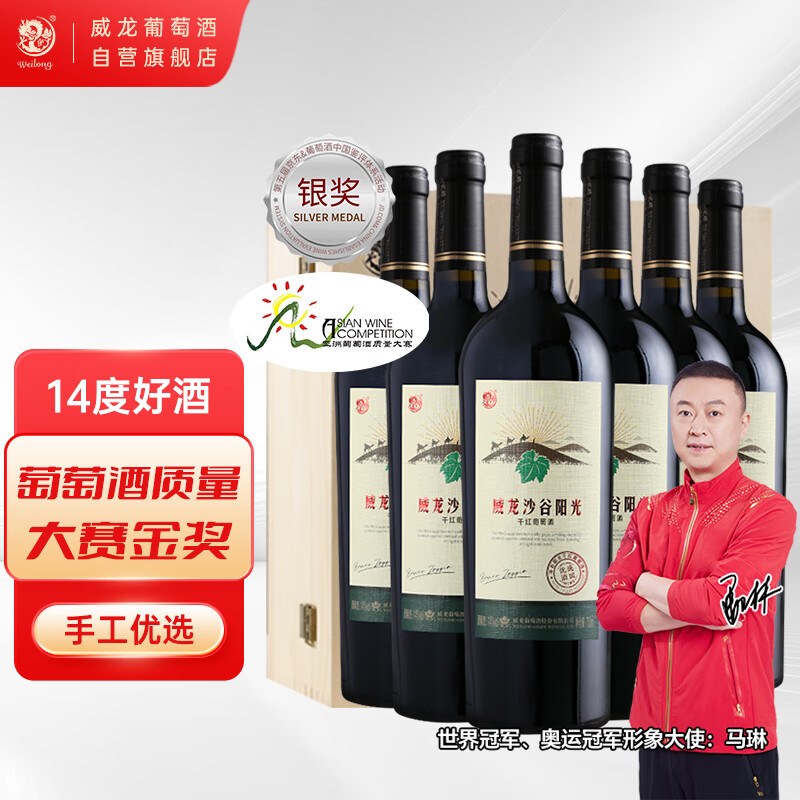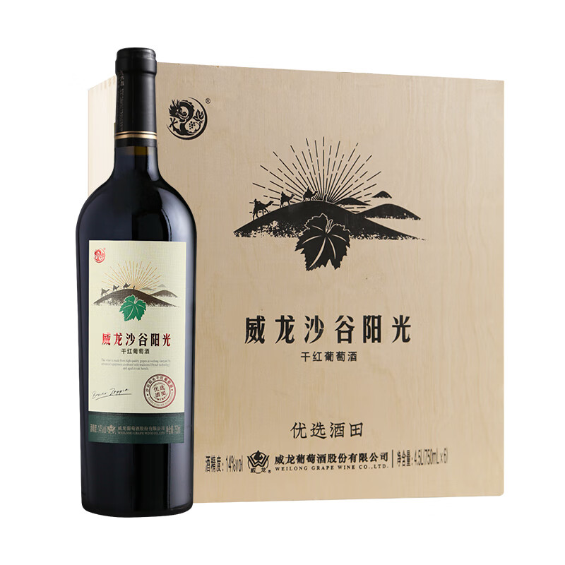 威龙红酒沙谷阳光赤霞珠干红葡萄酒750ml*6瓶木箱装商务宴请送礼价格:698.00元!