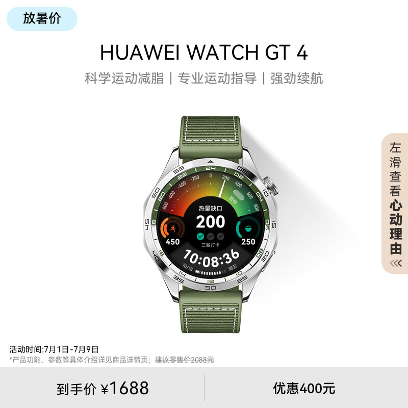 华为WATCH GT4华为手表智能手表呼吸健康研究心律失常提示华为手表云杉绿支持龙年表盘价格:1688.00元!
