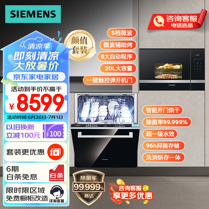 西门子14套大容量嵌入式家用洗碗机智能开门烘干 嵌入式微波炉组合套装 636Pro(含黑门板)+BE525价格:8599.00元!