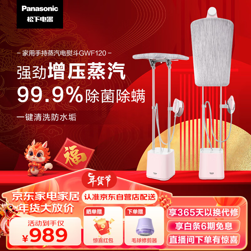 松下(Panasonic)挂烫机 家用电熨斗 手持增压蒸汽挂烫机 四档蒸汽模式双重加热 杀菌除螨 NI-GWF120价格:999.00元!