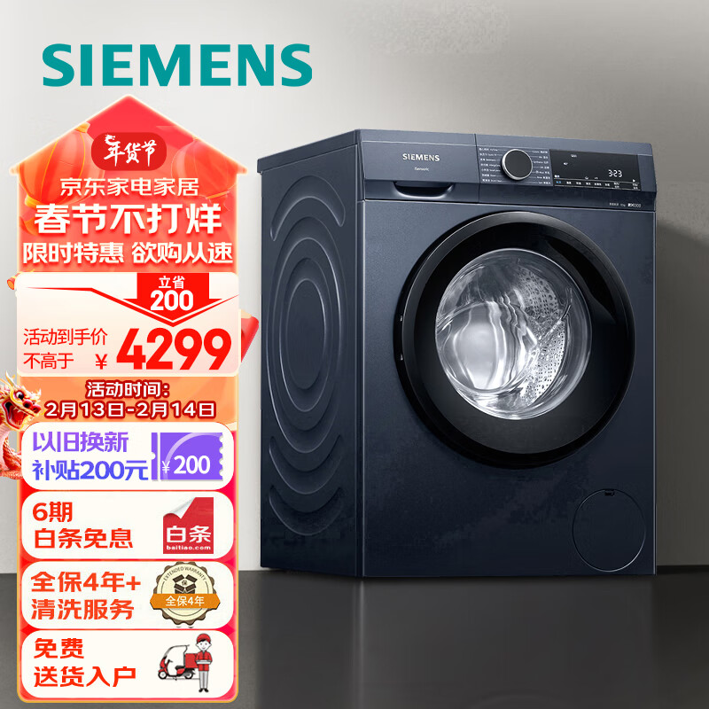 西门子(SIEMENS) 10公斤滚筒洗衣机 专业羽绒洗 智能除污渍 防过敏(湖蕴蓝)XQG100-WG52A1X14W价格:4499.00元!