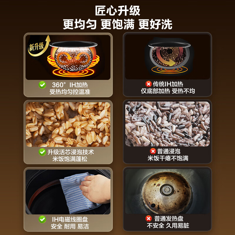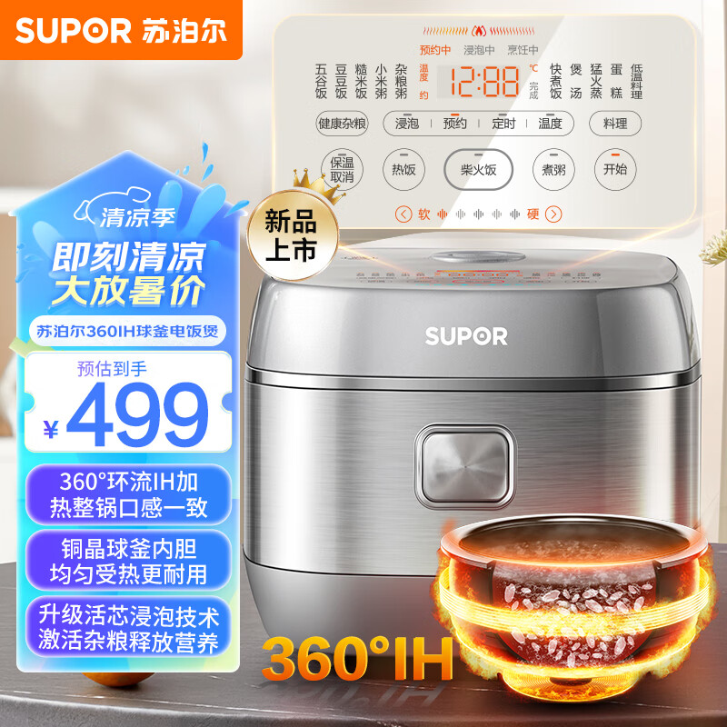 苏泊尔(SUPOR)电饭煲家用5-8人360IH球釜内胆电饭锅柴火饭4L升级活芯浸泡杂粮专攻家用智能电饭煲SF40HC0979价格:499.00元!