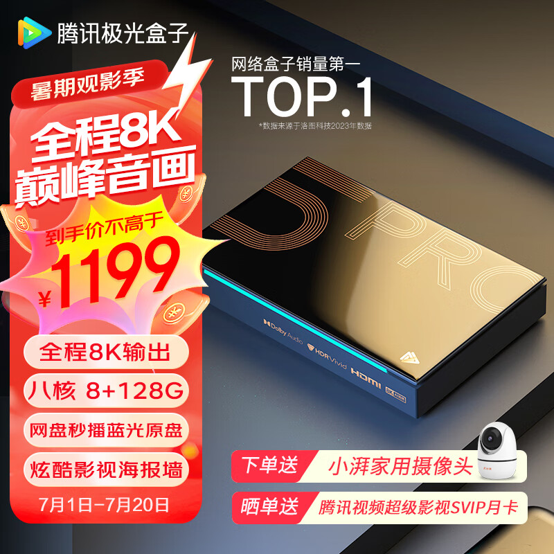 腾讯极光盒子5Pro 全程8K超高清电视盒子 八核智能网络机顶盒 杜比蓝光云盘硬盘播放机 无损音乐播放器价格:1199.00元!