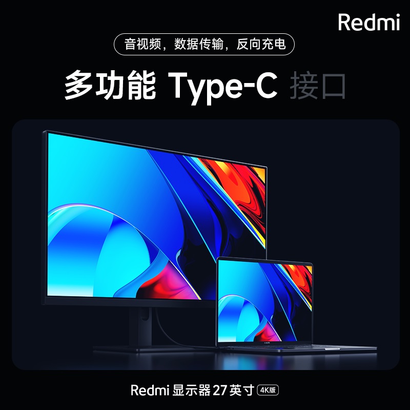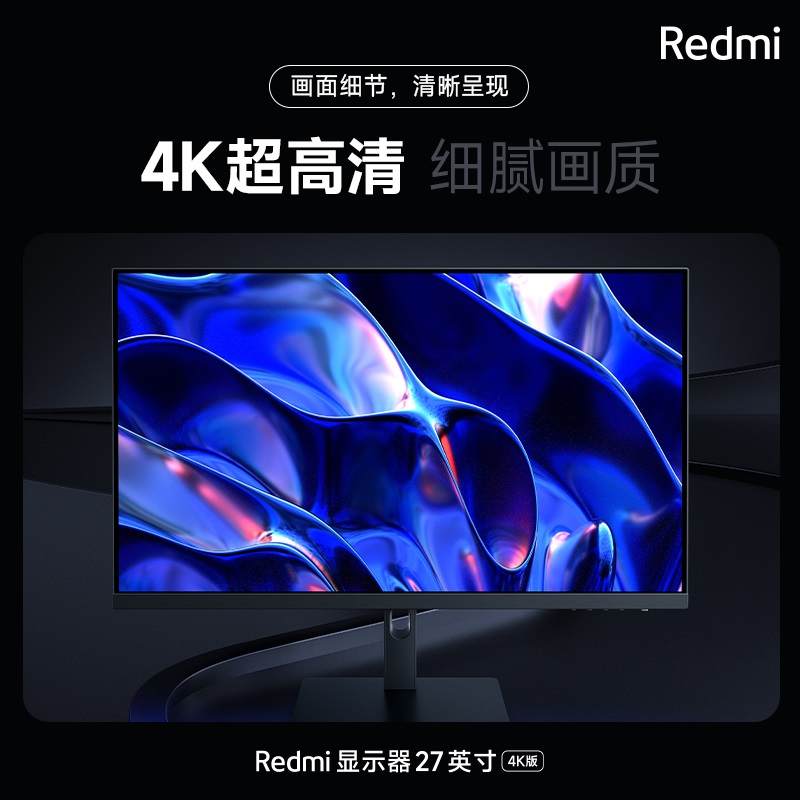 小米Redmi 27英寸显示器4K超清 100%sRGB HDR400 Type-C反向充电 升降旋转支架电脑办公显示器显示屏价格:1499.00元!