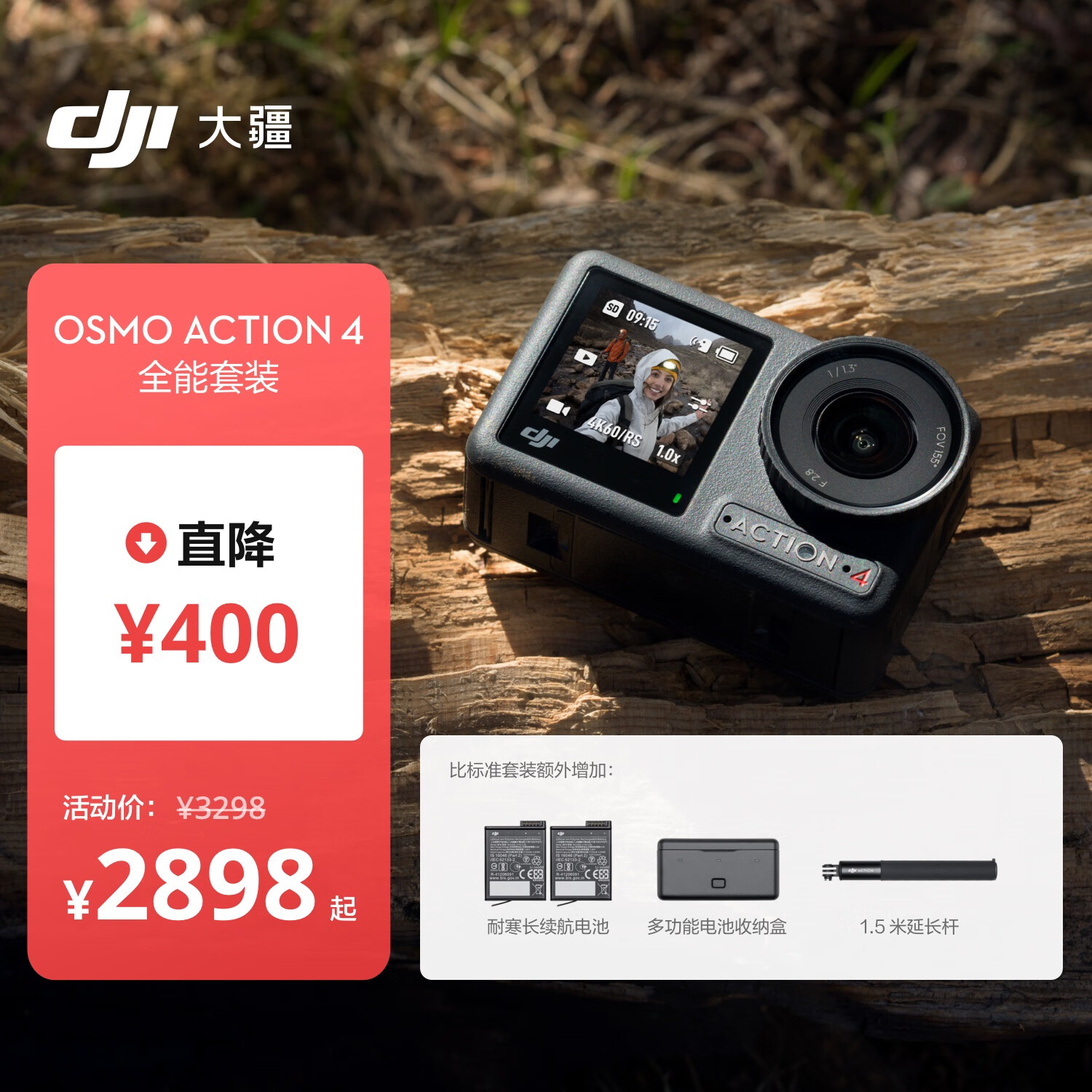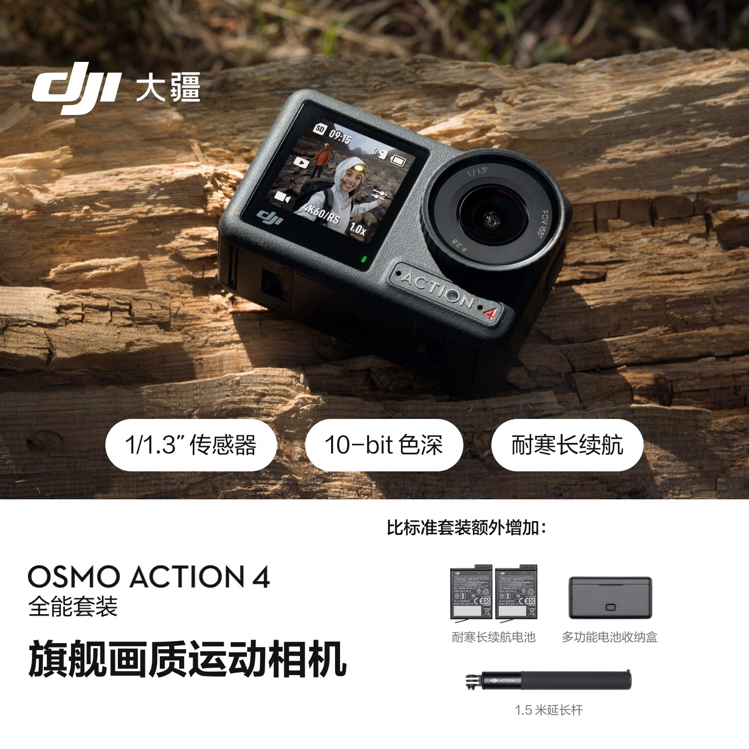 大疆 DJI Osmo Action 4 全能套装 灵眸运动相机 摩托车山地公路骑行潜水户外vlog相机 OA4便携摄像机价格:2898.00元!