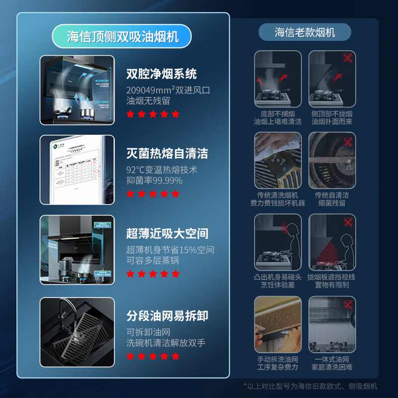 海信(Hisense)抽油烟机灶具套装 顶侧双吸烟灶套装23立方挥手免拆洗5.2kW燃气灶具套装DS11+DB31【以旧换新】价格:1899.00元!