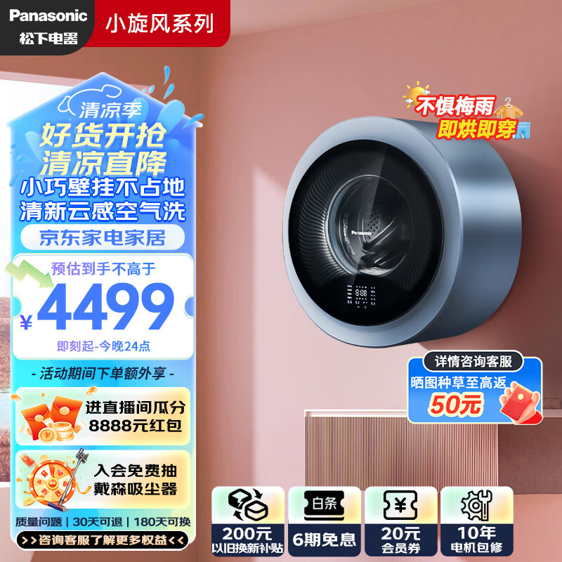 松下(Panasonic)滚筒洗衣机全自动【小旋风D】 洗烘一体 壁挂内衣内裤迷你小型儿童婴儿 母婴洗 XQG30-AD500L价格:4499.00元!