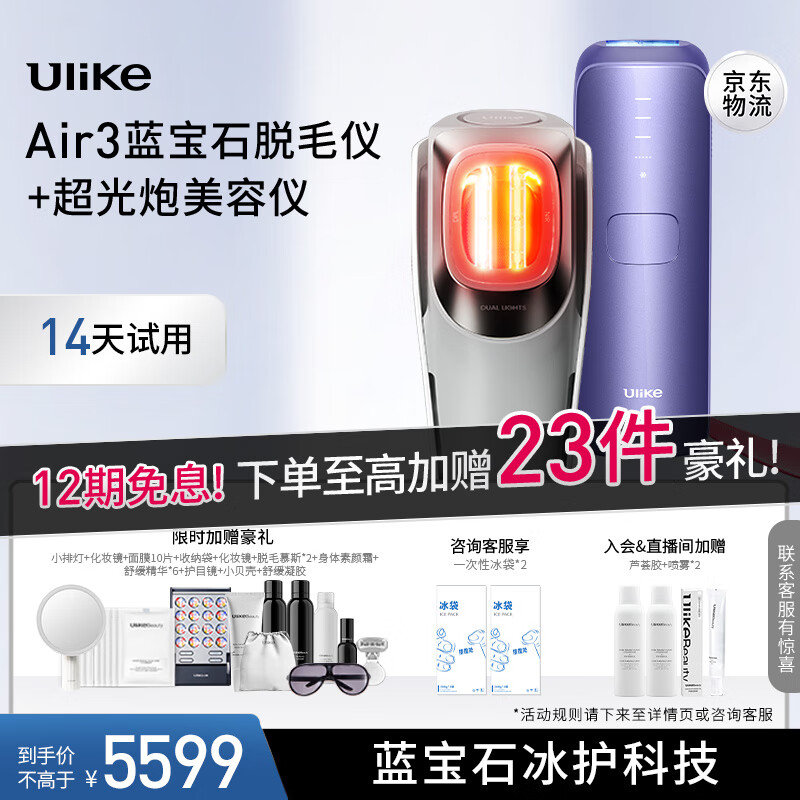 Ulike【超值嫩肤淡斑套组】Ulike超光炮美肤仪器牛奶光淡斑祛痘印光子美容蓝宝石冰点脱毛仪Air3水晶紫价格:6199.00元!