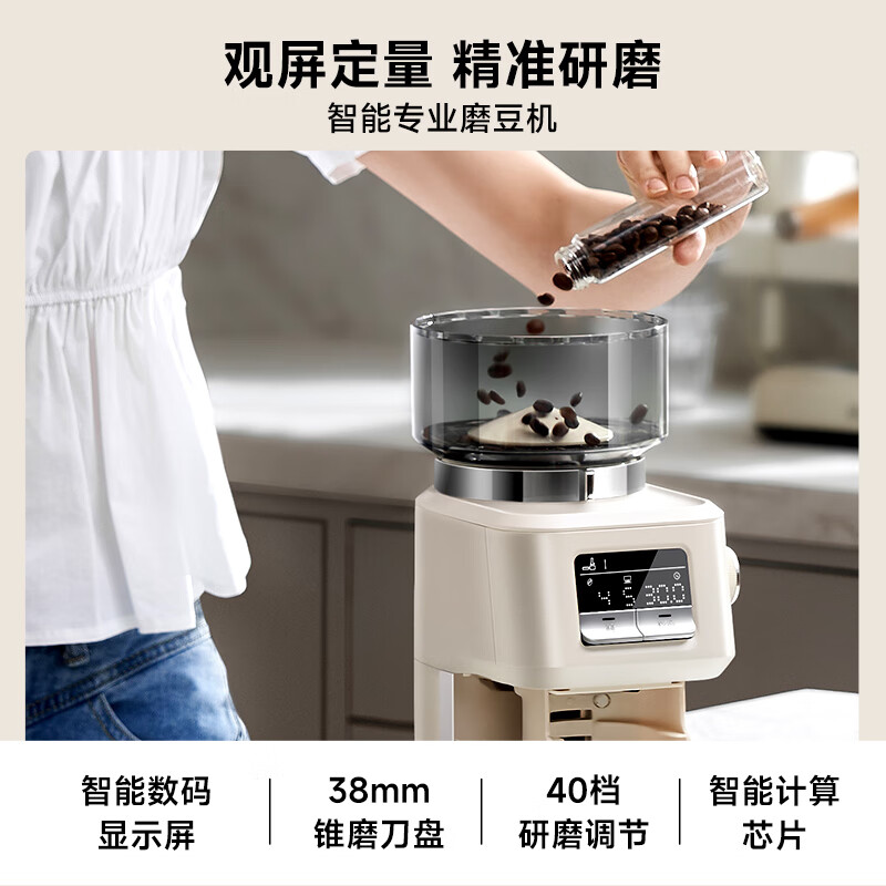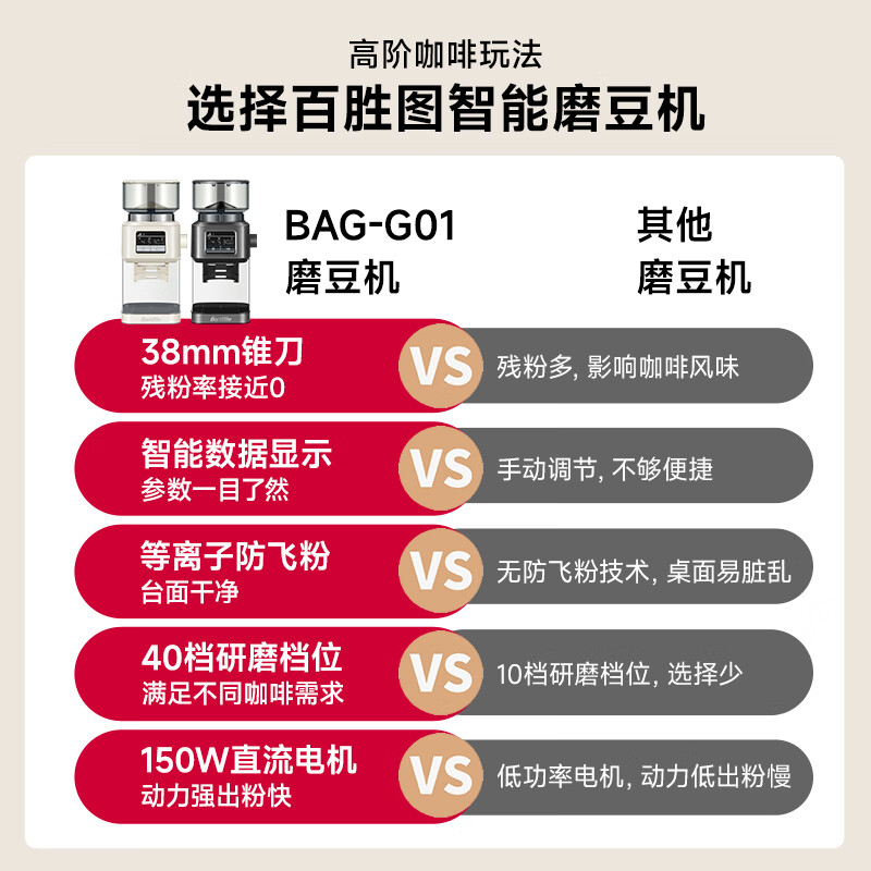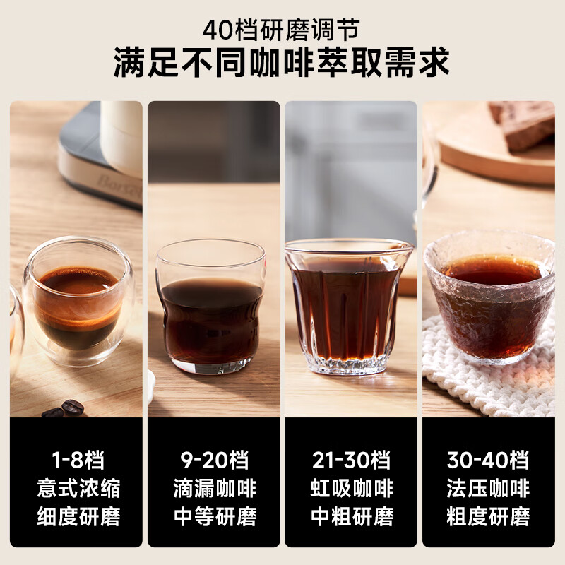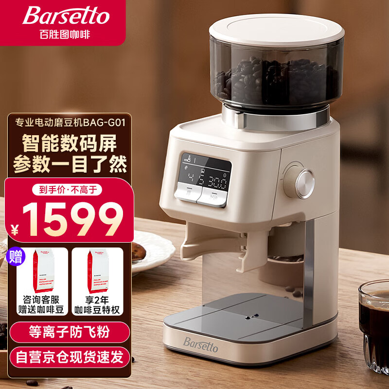 Barsetto专业磨豆机 百胜图咖啡豆电动研磨机 全自动家用小型意式美式虹吸法压咖啡磨粉机器BAG-G01米白色价格:2199.00元!