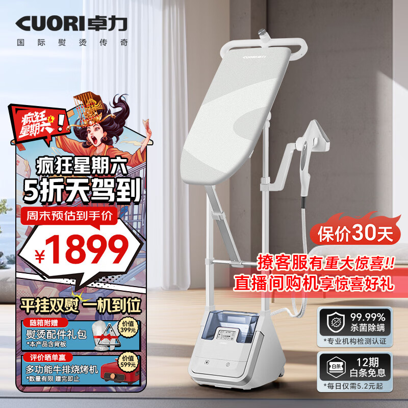 卓力(Cuori)智能增压挂烫机手持家用电熨斗BG537UE平竖烫一体升级版立式双杆多档价格:2109.00元!