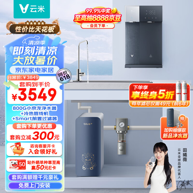 云米(VIOMI)小京龙800G全屋净水套装净水器+冷热管线机Master 3+前置过滤器VF4-A三件套家用净水器净水机价格:3849.00元!