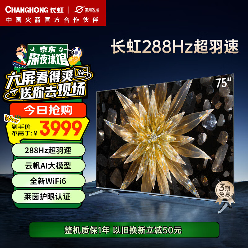长虹电视75D7 PRO 75英寸288Hz游戏电视 Mini动态背光杜比音画 欧洲杯 4K平板液晶LED电视机以旧换新价格:3999.00元!