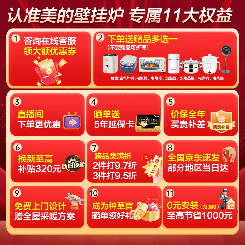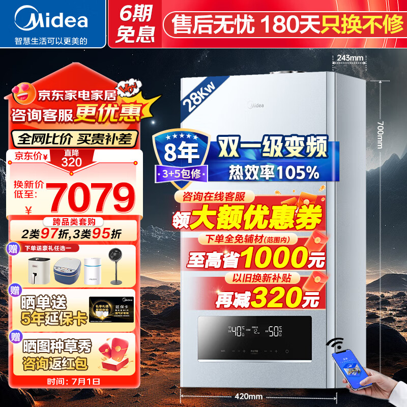 美的(Midea)R53壁挂炉天然气超一级能效冷凝式双变频燃气壁挂炉采暖锅炉恒温节能省气家用地暖暖气供暖热水器 28KW R53【美的高配一级能效】适用≤220㎡价格:9599.00元!