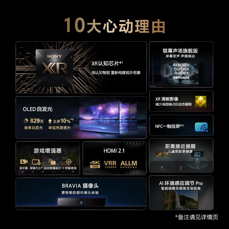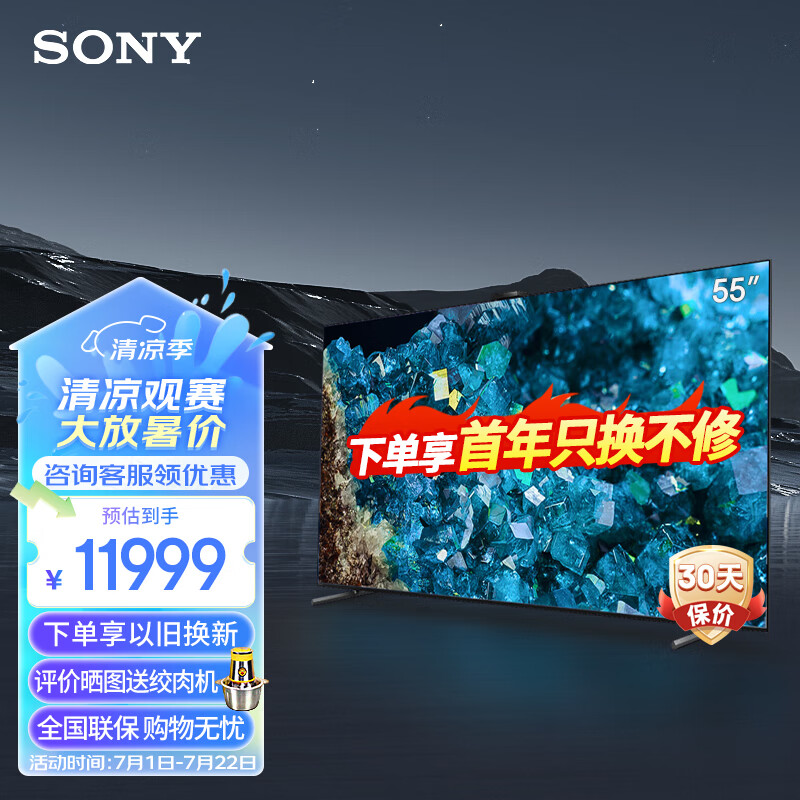 索尼(SONY)XR-55A80EL 55英寸 4K OLED智能电视 屏幕发声 搭载摄像头 XR认知芯片 屏电视机价格:13699.00元!