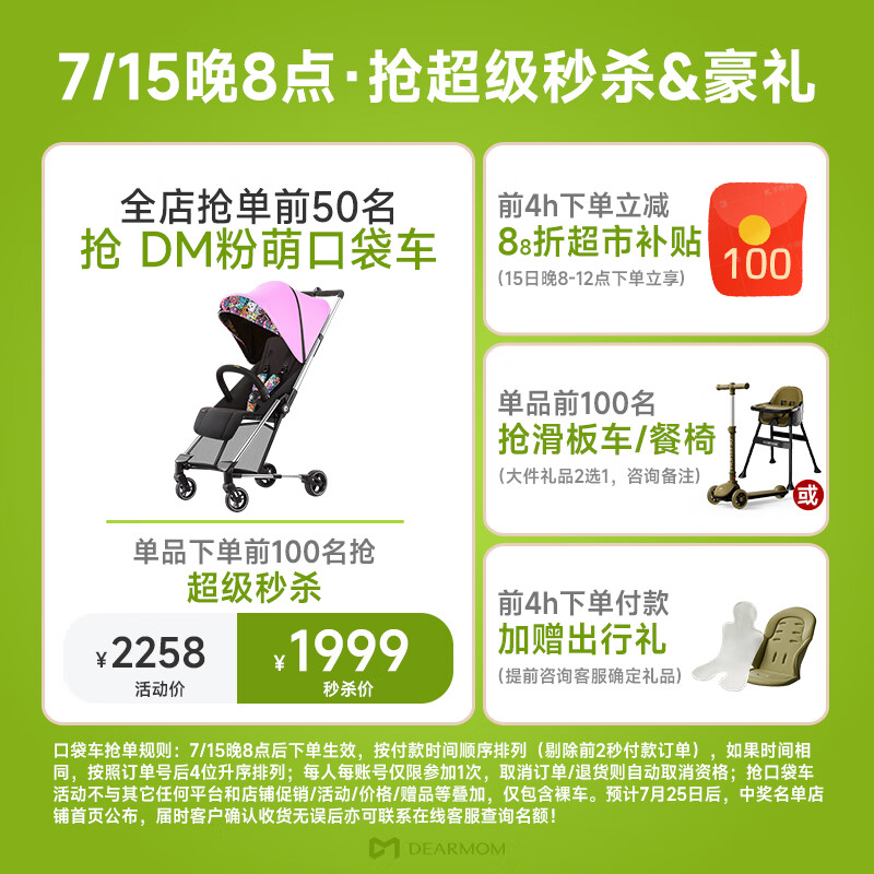 DearMom婴儿推车罗马假日双向可坐可躺轻便高景观大座舱可登机伞车 绿价格:2658.00元!