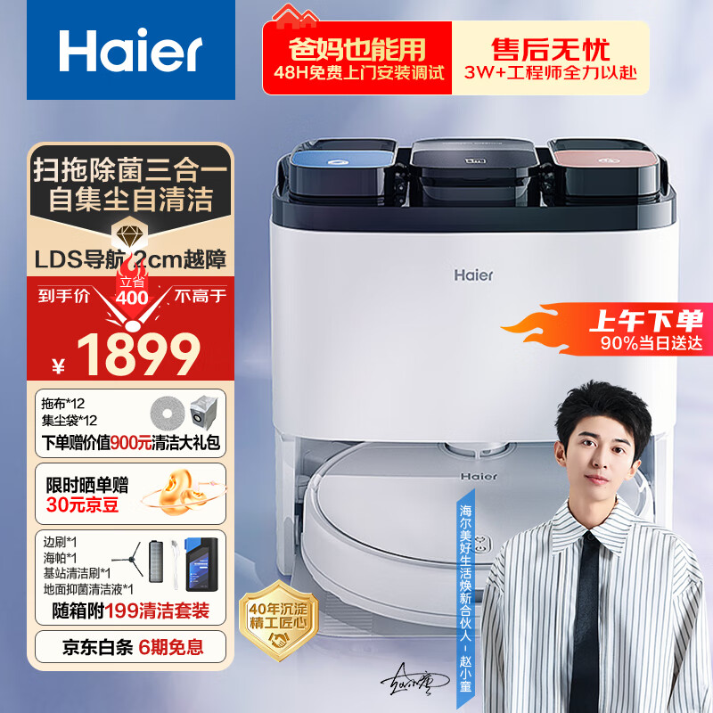 海尔(Haier)扫地机器人H11吸拖洗烘一体机电解水除菌全自动清洗自集尘擦窗机拖地机器人JH68U1价格:2099.00元!