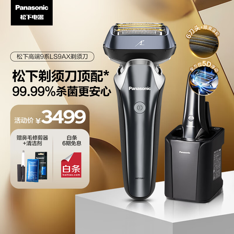 松下(Panasonic)高端9系剃须刀刮胡刀电动往复式磁悬浮马达进口6刀头生日礼物男士 父亲节送爸爸男友送老公LS9AX价格:3499.00元!
