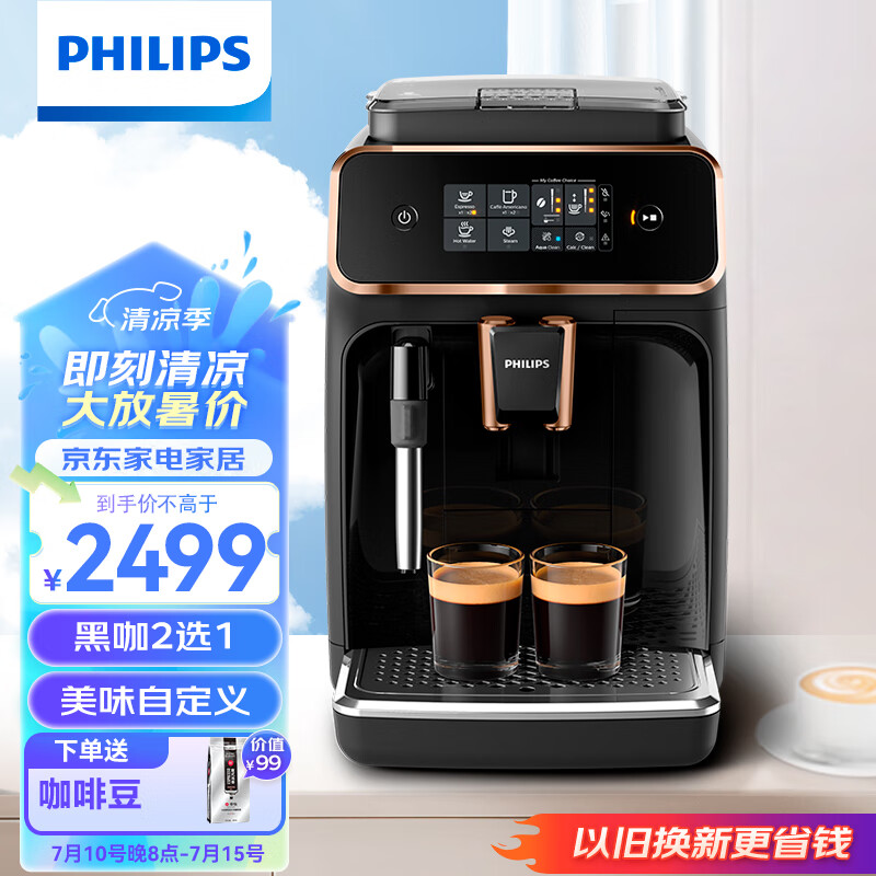 飞利浦(PHILIPS)黑珍珠Plus咖啡机 意式全自动家用现磨咖啡机 办公室研磨一体机奶泡系统 触控屏 EP2124/72价格:2769.00元!