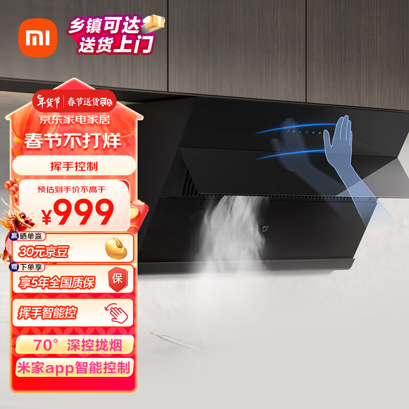 米家小米侧吸油烟机 22大吸力小尺寸抽油烟机 米家小爱智能挥手控制易清洁 烟灶联动小户型排烟机MJ02C价格:879.00元!