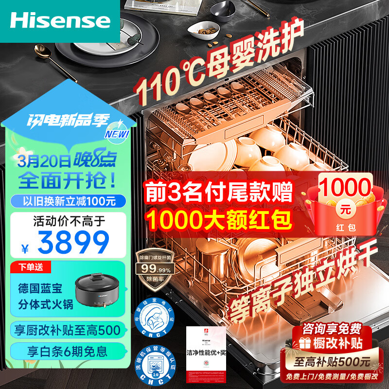 海信(Hisense)洗碗机15套 母婴除菌智能分层增高水压自动净洗涡轮热风烘干双一级保管 独立式嵌入式家用C507i价格:3899.00元!