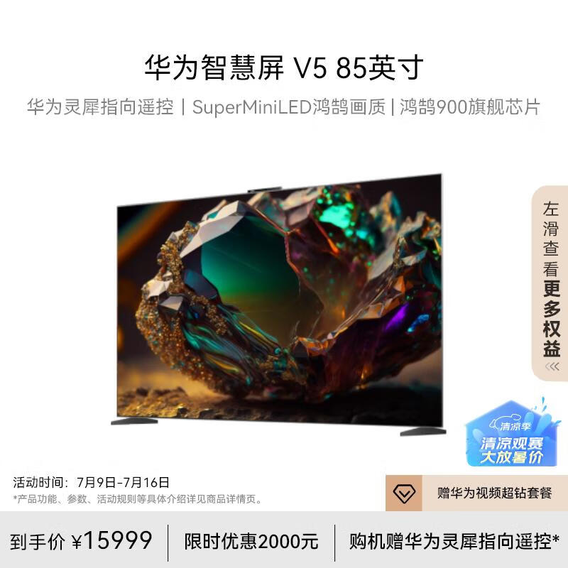 华为智慧屏 V5 85英寸 MiniLED鸿鹄画质巨幕影院 超薄屏4K超高清智能大屏护眼液晶电视机HD85ARKB价格:15999.00元!