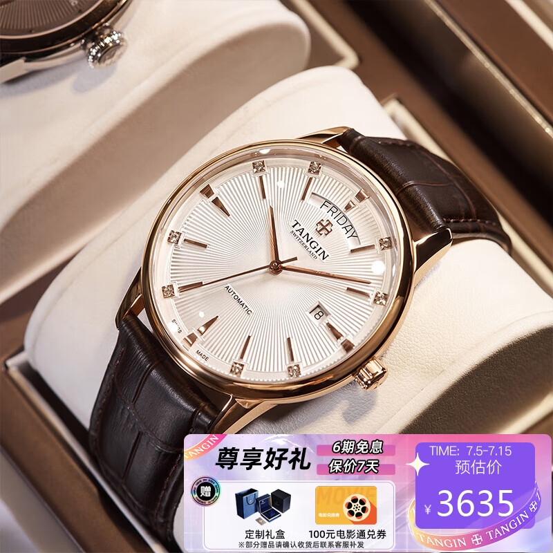 天珺(TANGIN)瑞士手表男 机械男士手表时尚皮带瑞表 送男友 T7025GHWFSB价格:3635.00元!