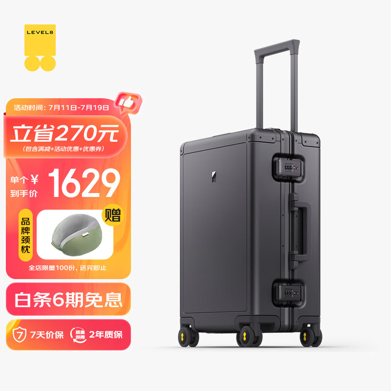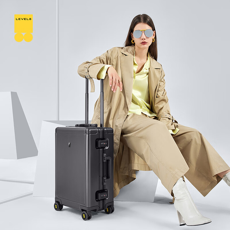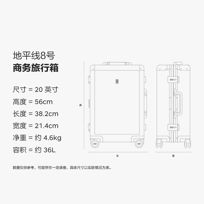 地平线8号(LEVEL8)行李箱男 商务20英寸密码旅行箱铝镁合金登机飞行家拉杆箱女 灰价格:1899.00元!