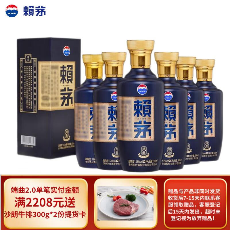 赖茅茅台 端曲2.0 酱香型白酒 53度 500ml*6瓶 整箱装 商务送礼价格:2208.00元!