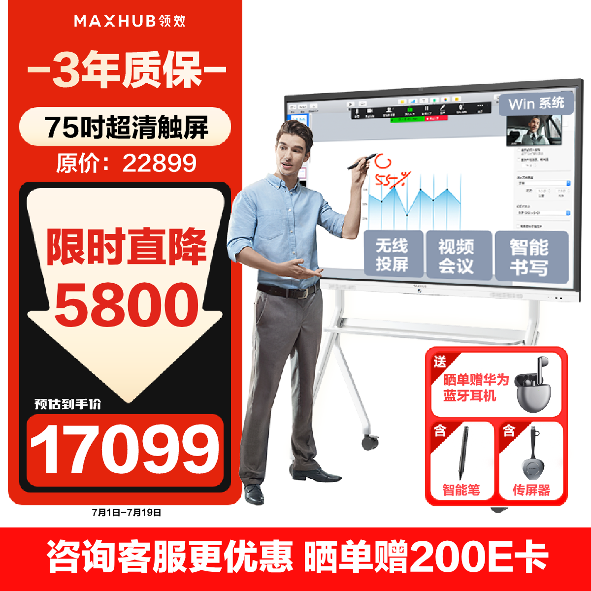 maxhub会议平板新锐Pro75英寸 触摸视频会议电视一体机 投屏电视智慧屏 SC75 i5+支架+传屏+笔 商用显示价格:17099.00元!