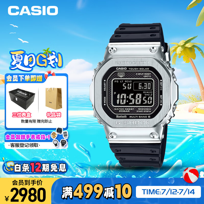 卡西欧(CASIO)手表男士经典小方块G-SHOCK运动电子日韩表礼物GMW-B5000-1价格:2990.00元!