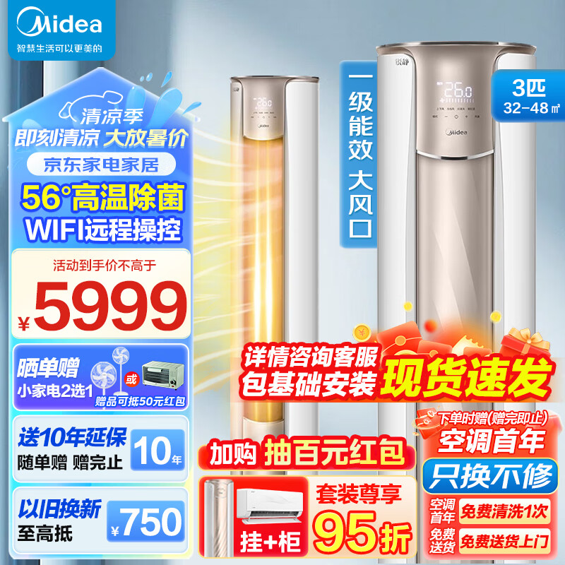 美的(Midea)空调立式柜机锐静二代3匹一级能效全直流变频冷暖自清洁家用客厅圆柱柜机KFR-72LW/N8VHC1Ⅱ价格:6299.00元!