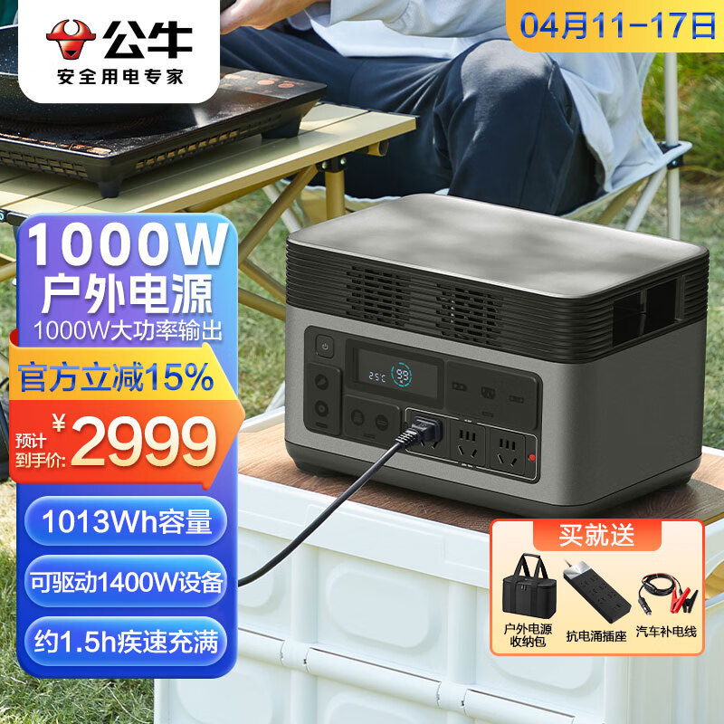 公牛快充户外移动电源1000W大功率GNV-Y110 约1.5H充满 220V大容量储能电源应急停电备用 极夜灰价格:3528.20元!