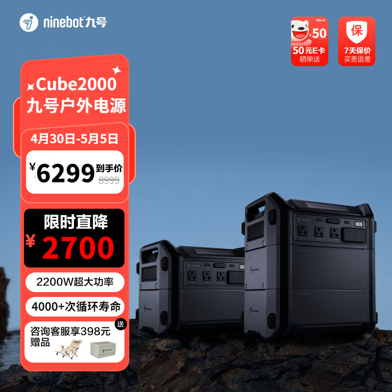 Ninebot九号户外电源2度电Segway Cube2000大功率2200W停电应急移动储能备用车载自驾露营磷酸铁锂价格:6299.00元!