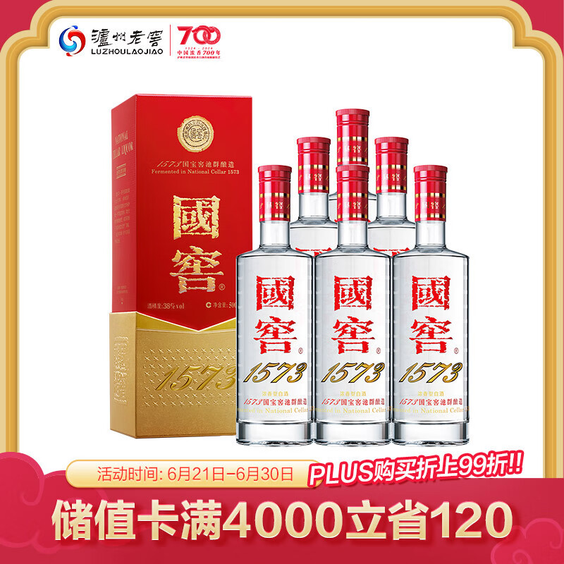 泸州老窖 国窖1573 浓香型白酒 38度 500ml*6瓶 整箱装(新老包装随机发货)价格:4420.00元!