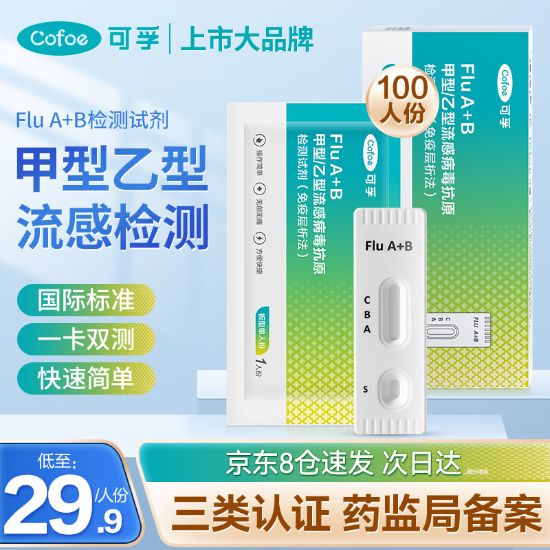 可孚 甲流乙流检测盒 流感检测试剂盒 流感病毒检测甲流试纸发热感冒家居自测盒100人份价格:2990.00元!