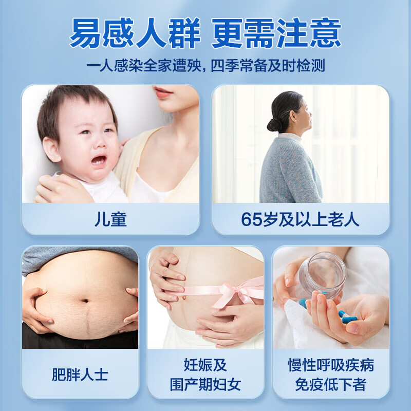1、流感高发期,小孩发高烧,头痛又流涕咳嗽,去到医院又没得立刻做,只好自己网购了,很方便,确诊流感后下药也放心。流感真的传染性太厉害了,隔壁同桌发烧请假,第二天,小孩就中招了,连续甲流,乙流。