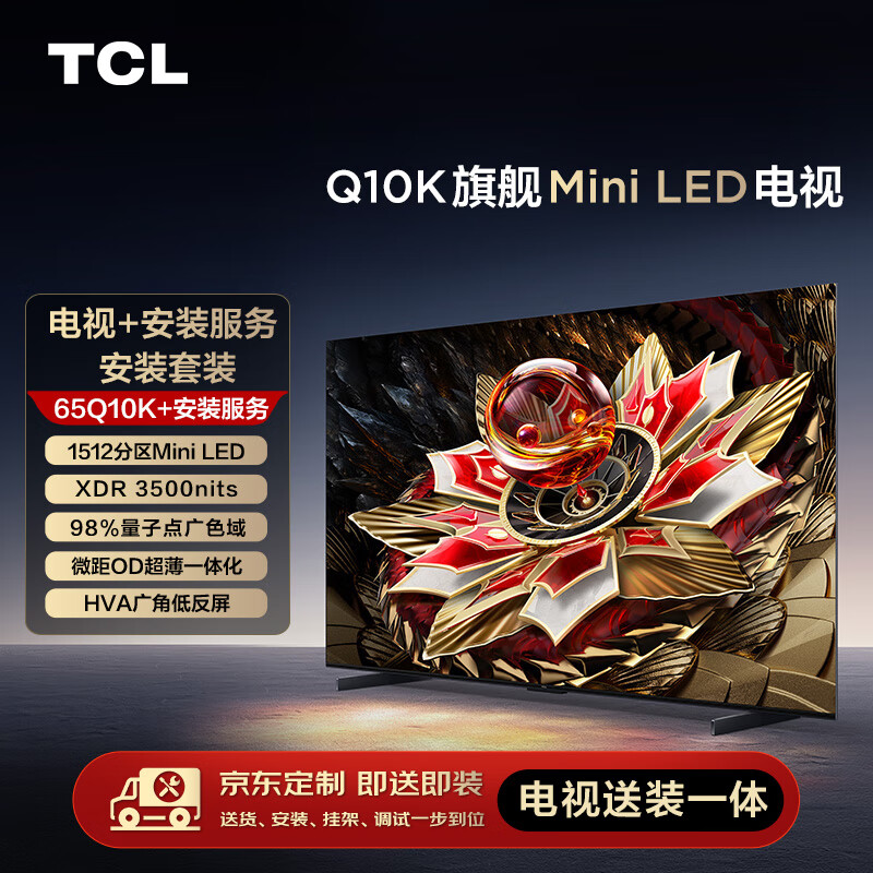 TCL【送装一体版】安装套装-65Q10K 65英寸 旗舰Mini LED电视 Q10K+安装服务含挂架价格:7138.00元!