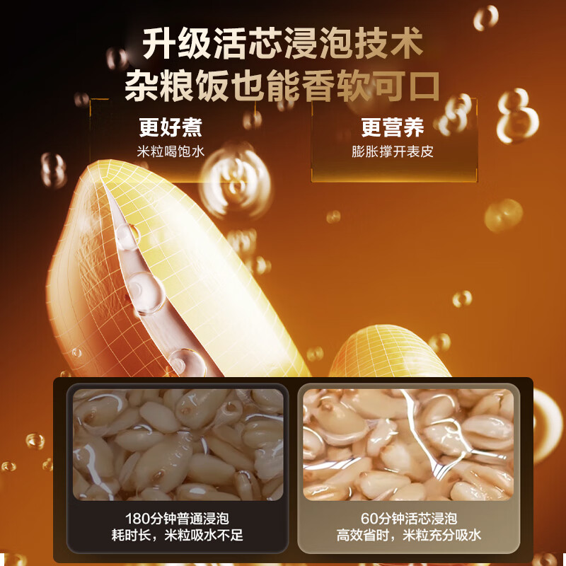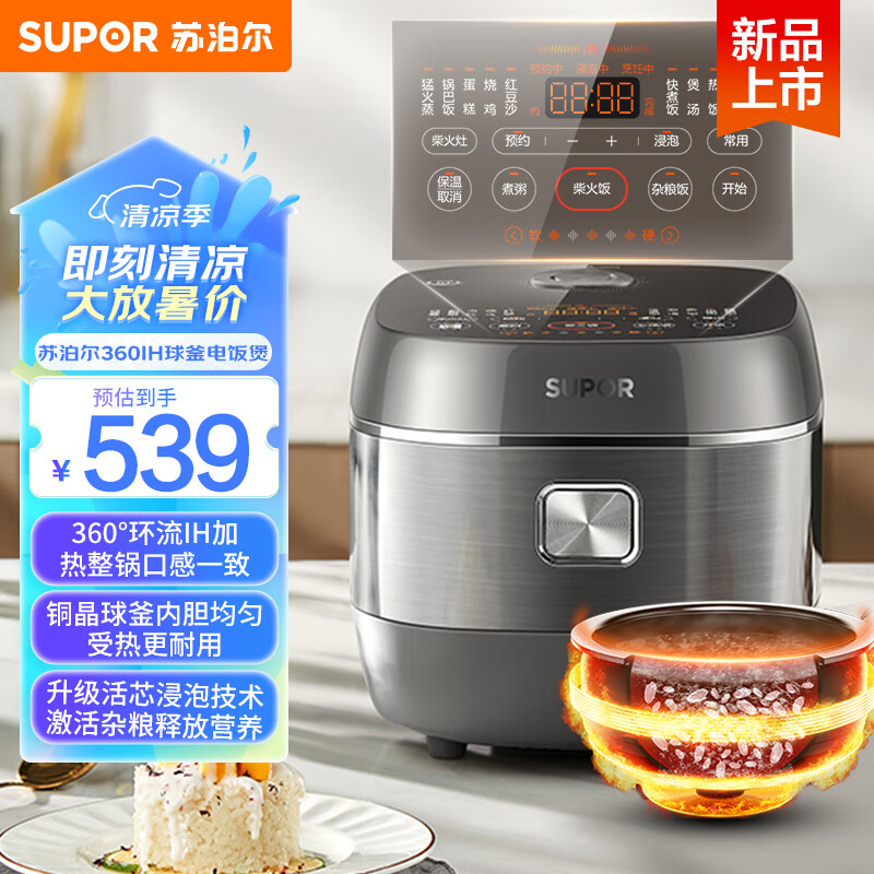 苏泊尔(SUPOR)电饭煲家用5L5-8人360IH球釜内胆电饭锅柴火饭升级活芯浸泡杂粮专攻家用智能多功能SF50HC0989价格:539.00元!
