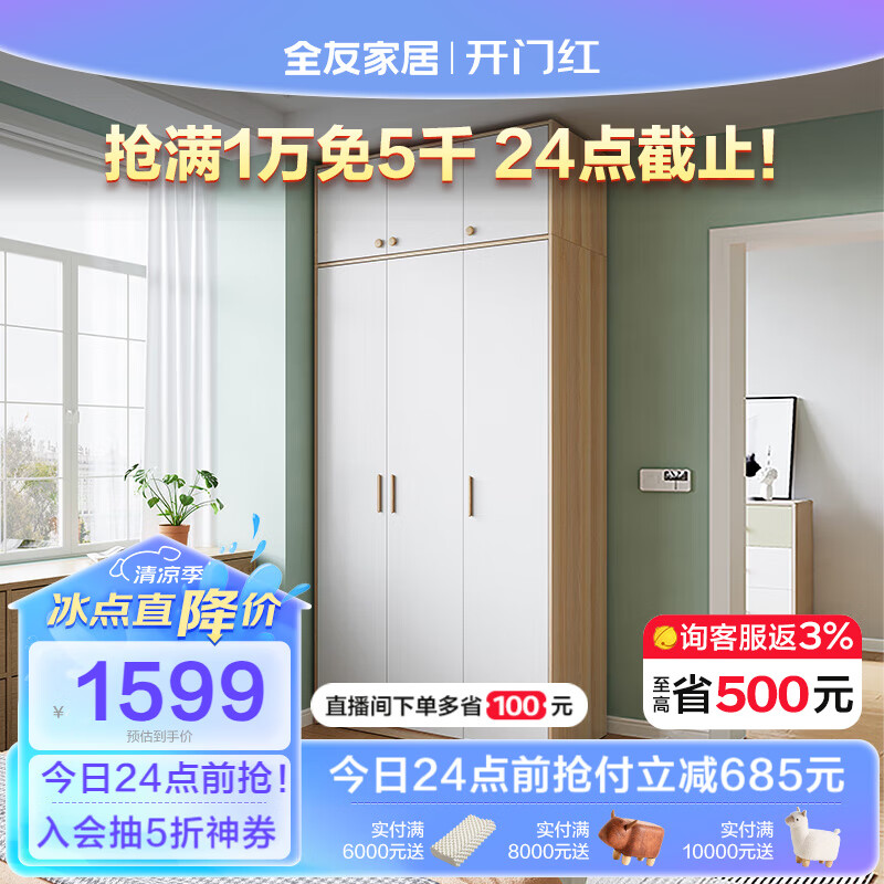 全友家居 衣柜现代北欧风三门衣柜卧室储物家具平开门衣柜126331价格:2284.29元!