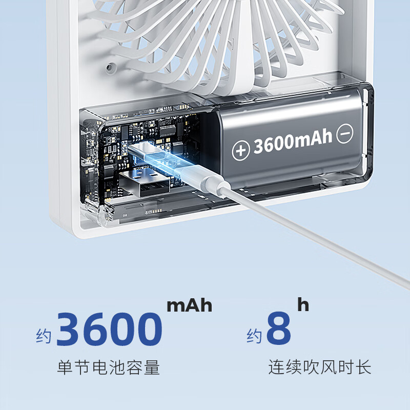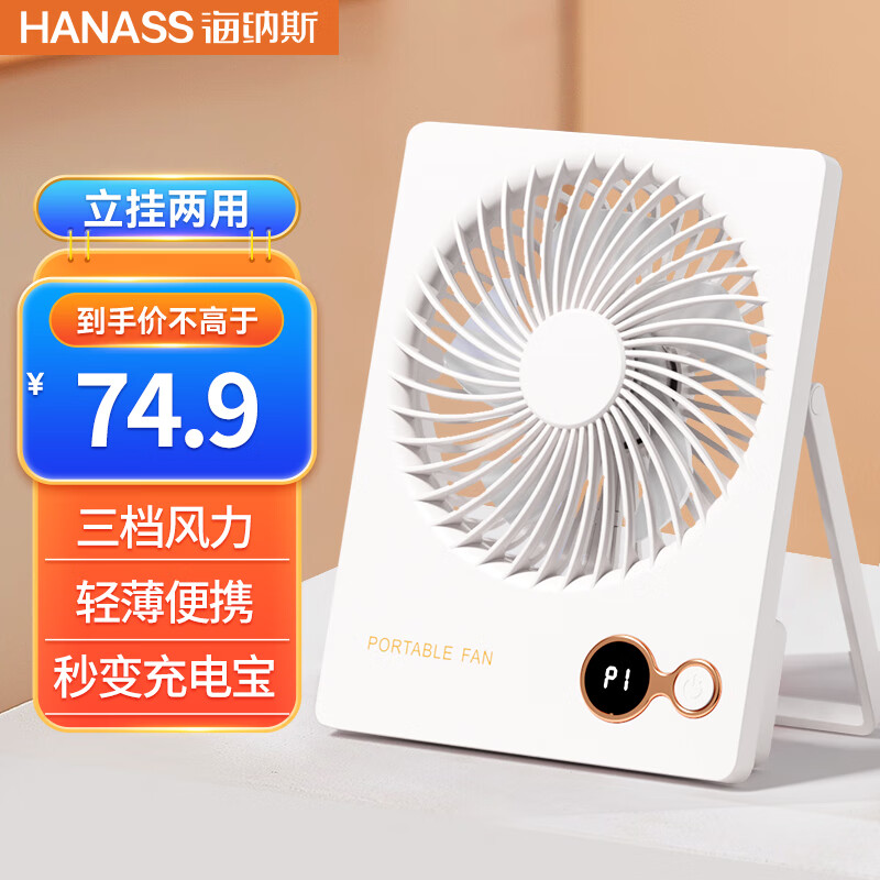 海纳斯(HANASS)桌面小风扇 充电风扇 户外台式 办公学生宿舍 床头便携折叠挂壁风扇F11价格:119.90元!