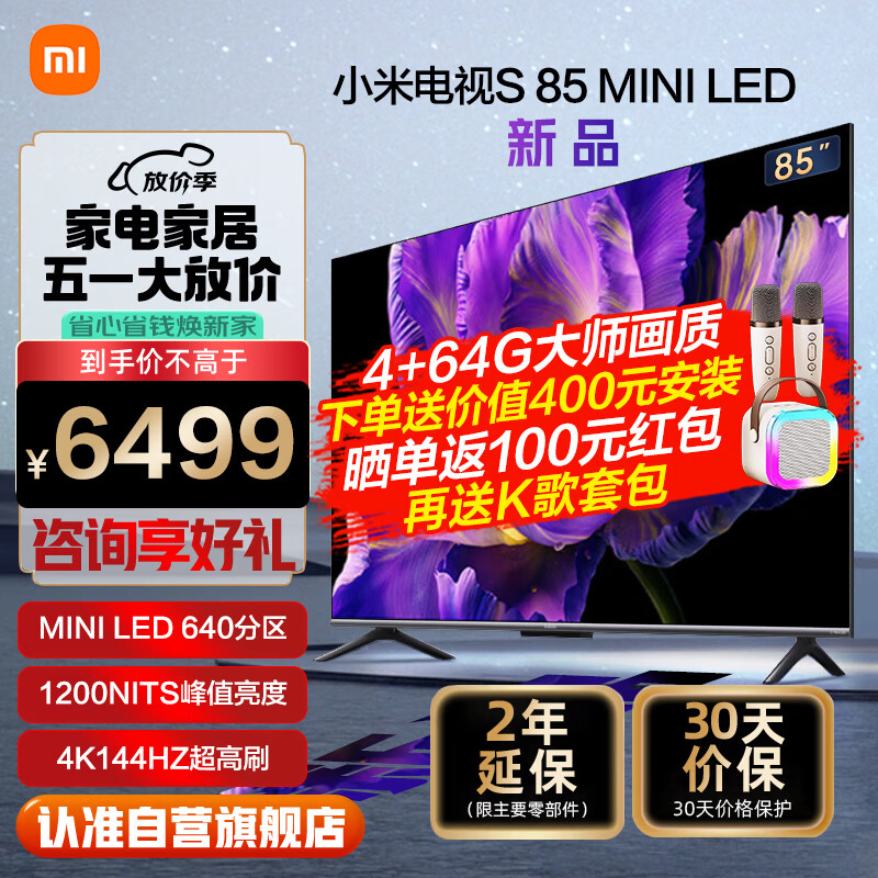 小米(MI)电视S85 Mini LED 85英寸 1200nits 4GB+64GB 液晶平板电视机 L85MA-SPL [45仓直发]价格:6499.00元!