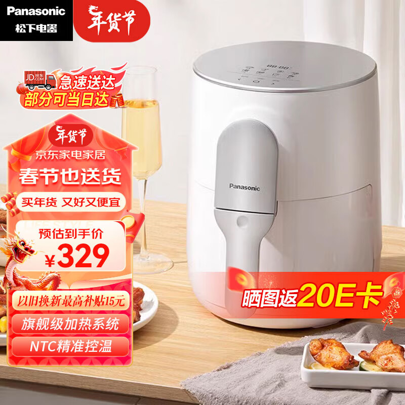 松下(Panasonic)多功能家用不用翻面健康低脂双屏显示 4L大容量 空气炸锅NF-HC100-W价格:329.00元!