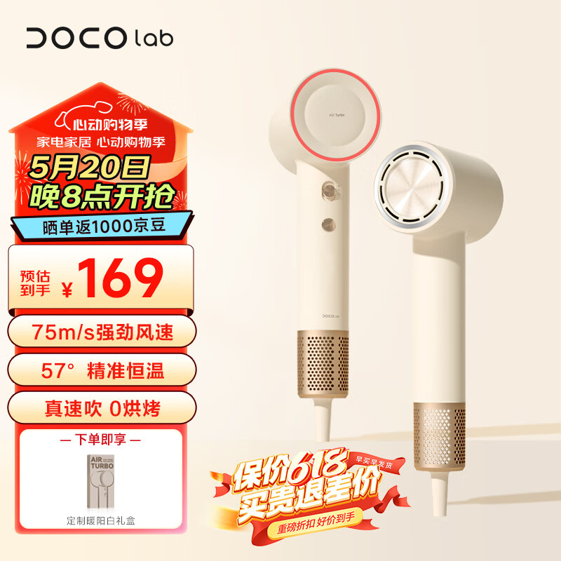 DOCO LAB小米有品高速吹风机2亿负离子护发家用大功率低噪电吹风筒无叶大风力速干智能恒温学生宿舍寝室价格:309.00元!