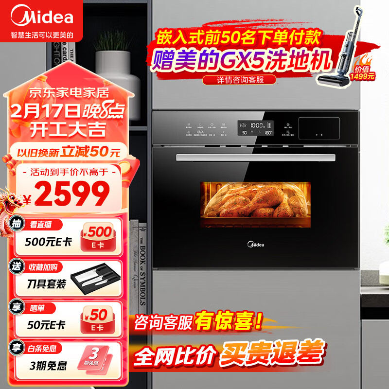 美的(Midea)伯爵 蒸汽烤箱 嵌入式电蒸箱电烤箱 家用大容量蒸烤一体机TQN34FBJ-SA价格:2599.00元!