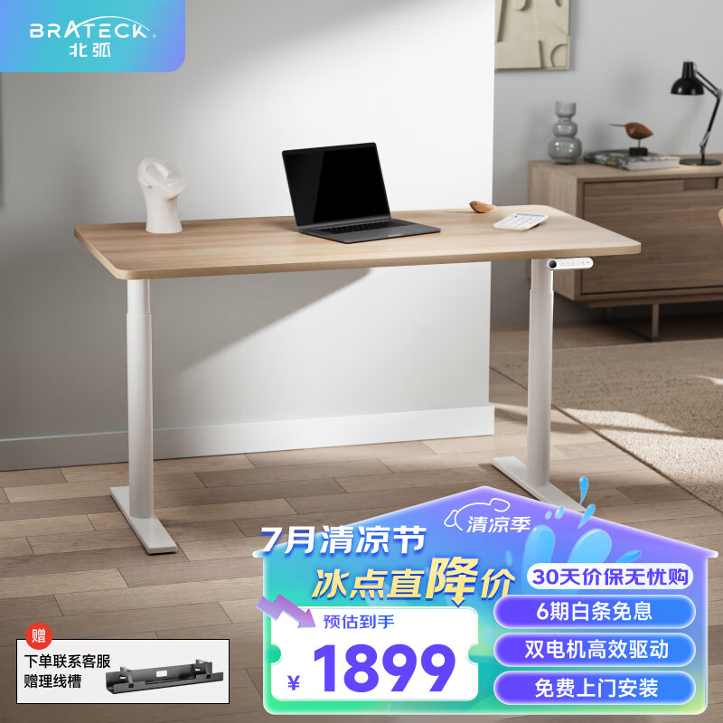 Brateck双电机电动升降电脑桌 北弧站立办公升降书桌 升降台 M1黄1.2米价格:2109.00元!