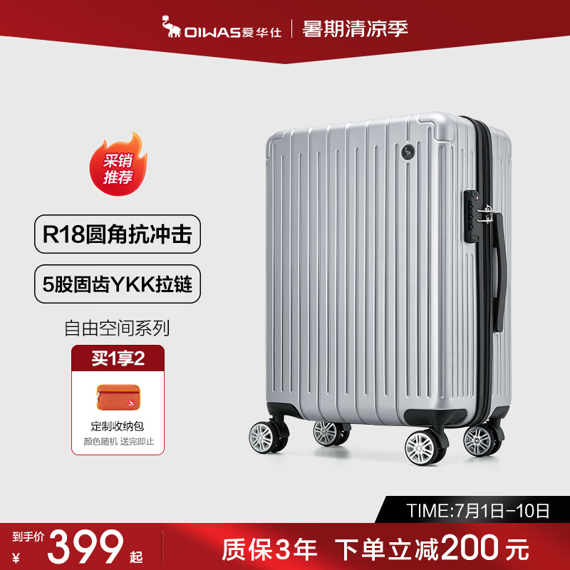 爱华仕行李箱男拉杆箱女大容量旅行箱轻便万向飞机轮24英寸密码箱冰川银价格:599.00元!