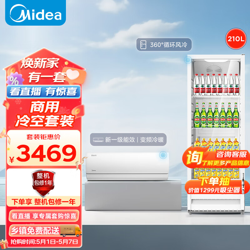 美的冰空套装 210升风冷立式商超展示柜ML-208DGE+酷省电1.5匹一级变频冷暖空调KFR-35GW/N8KS1-1价格:3466.00元!